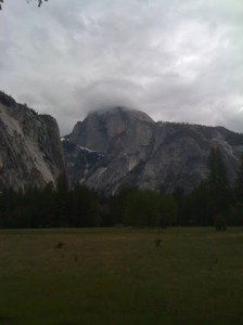 Half Dome, my old friend. Hiked to the top when I was 14, 16 miles round trip, with an elevation gain/loss of 5,131 feet, elevation at the top is over 8,000 feet. The last part is reached only by steel cables….believe me, you need both hands! ![]()