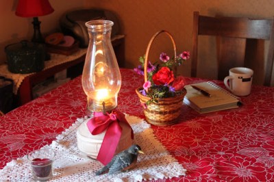 The kerosene lamp that she has always had on her table