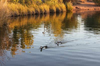 Two ducks heading to communal evening bath time